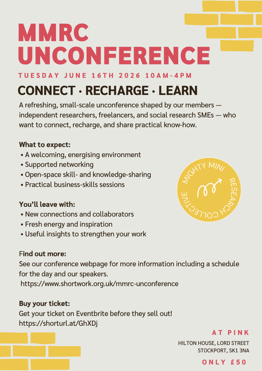 The Mighty Mini Research Collective is a member-led community for independent researchers, micro businesses, and community interest companies (CICs) making a difference through social research.